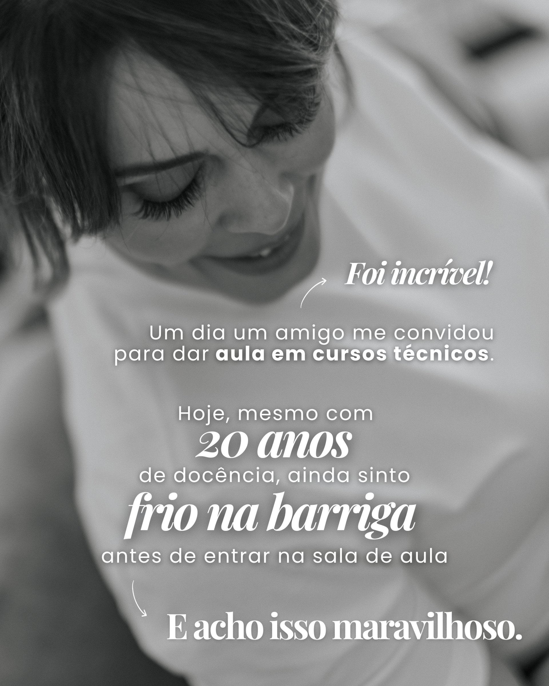 Utilizo a metodologia ativa de ensino, que coloca o participante como parte do processo de aprendizagem — não apenas como ouvinte.